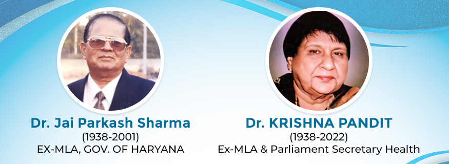 Born on 14 October, 1938 at village Gobindpuri in a family of agriculturists being the youngest of the three brothers. He rose from a village environment to enroll in a medical college and completed his MBBS and MS (General Surgery) from Medical College, Amritsar. He was working as associated professor at Dayanand Medical College, Ludhiana in 1972 when responding to his Father Pt. Jhandu Lal Sharma’s call he shifted to Yamuna Nagar and set up Lal Maternity and General Hospital. He along with wife Dr. Krishna Pandit worked day and night to serve the ailing humanity in this medically backward area in those days. He had a passion for acquiring latest instrument and equipment. He was very popular doctor and a social figure. He was thrice President of Indian Medical Association, Haryana and Vice President IMA Headquarters, Delhi. He was also the President of the NorthernChapter of Association of Surgeon of India. After serving the medical field he wanted to contribute his services to the Political arena. He was elected MLA from Yamuna Nagar. He had a dream to set up a world standard institute offering medical education in various fields.